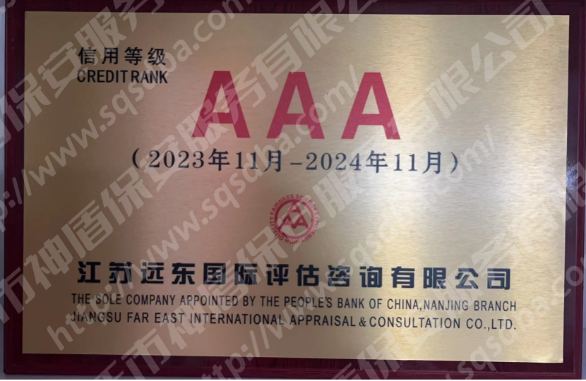AAA資信等級證書
