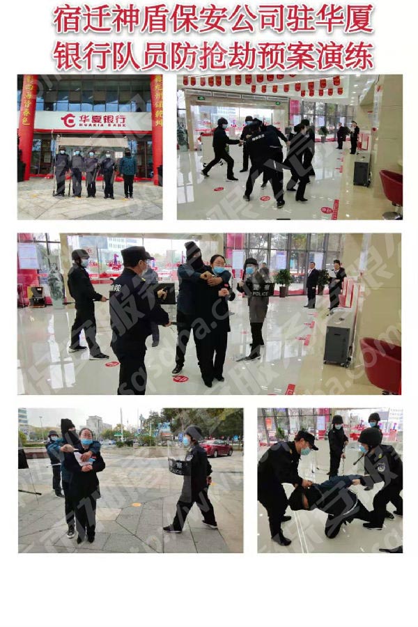 11月18日,宿遷市神盾保安有限公司駐華廈銀行保安分隊(duì)組織開展防搶劫應(yīng)急預(yù)案演練。開展經(jīng)常性應(yīng)急處突演練是做好銀行安全保衛(wèi)工作的基本要求,也是加強(qiáng)安全防范工作的有效手段。通過現(xiàn)場模擬實(shí)戰(zhàn)演練,進(jìn)一步提高了保安人員熟練掌握處置突發(fā)事件的工作流程和防護(hù)器材的使用方法,錘煉了保安人員應(yīng)急處突時臨危不懼、靈活應(yīng)對、規(guī)范處置的專業(yè)技能。
