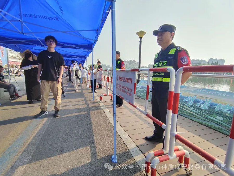 龍舟賽現(xiàn)場吸引了很多參賽運動員和周邊龍舟愛好者,現(xiàn)場高峰時人流量超過數(shù)萬人。為了做好活動安保,公司領導進行多次實地現(xiàn)場勘察,并做好充分準備,抽調(diào)精兵強將,全力配合公安機關做好2024 “聯(lián)合水務杯”宿遷市端午龍舟賽活動安保工作,共出動保安隊員200余人,圓滿完成此次龍舟賽物品看護、舞臺、賽區(qū)周邊安全值守等現(xiàn)場秩序維護工作,確保本次活動完美收官。