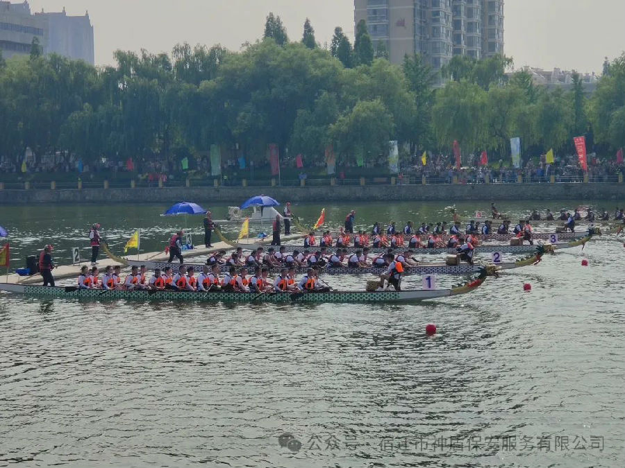 古黃河畔,戰(zhàn)鼓再起,6月10日早上7:30,2024 “聯(lián)合水務杯”宿遷市端午龍舟賽活動在古黃河金鷹段拉開了序幕。38支參賽隊伍,楫槳飛舞,激情逐浪。 宿遷神盾保安服務有限公司在宿城公安分局監(jiān)管領導的指導下,協(xié)助公安機關負責賽事的安保工作。經(jīng)過200余名隊員的辛勤付出,2024“聯(lián)合水務杯”宿遷市端午龍舟賽各項活動完美收官。