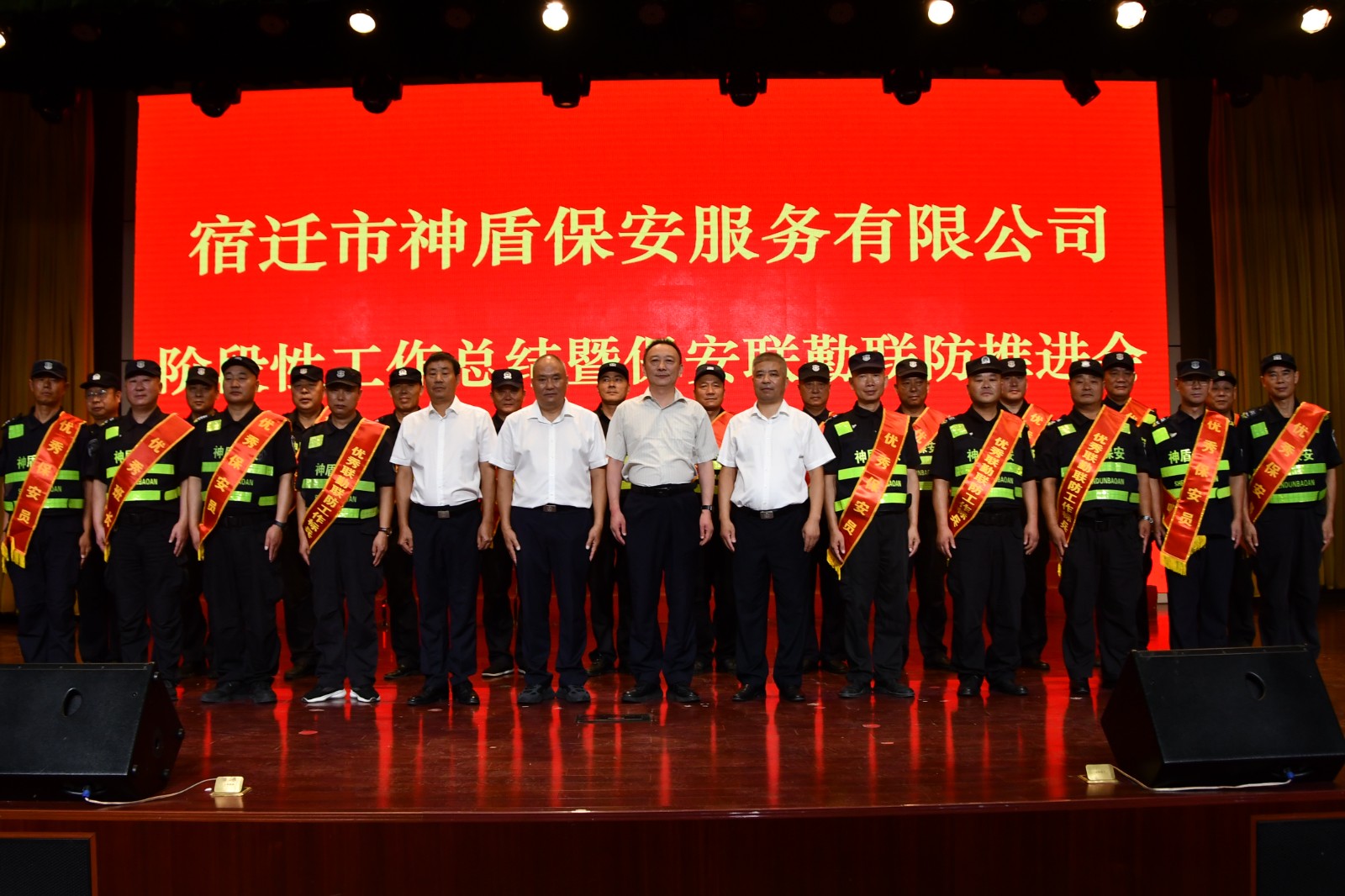 8月8日上午,宿遷市神盾保安服務(wù)有限公司召開階段性工作總結(jié)表彰暨保安聯(lián)勤聯(lián)防推進(jìn)會(huì)。公司領(lǐng)導(dǎo)、管理層人員以及獲得表彰獎(jiǎng)勵(lì)的先進(jìn)集體、優(yōu)秀員工共100余人參加會(huì)議。