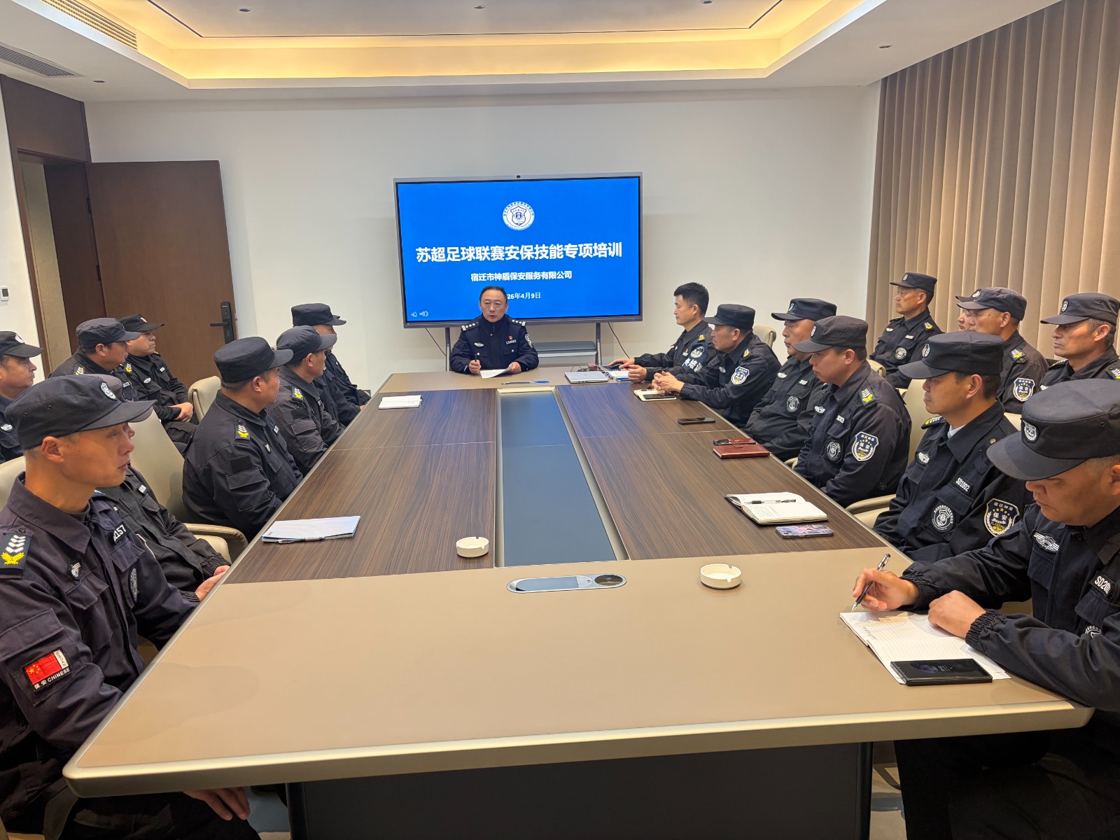 蘇超臨近,為高質(zhì)量完成2026年江蘇省城市足球聯(lián)賽(宿遷賽區(qū))安保任務(wù),根據(jù)“蘇超聯(lián)賽”安保工作部署要求,宿遷市神盾保安服務(wù)有限公司于2026年4月9日開展了蘇超聯(lián)賽保安服務(wù)專項培訓(xùn)會,進一步強化保安員素養(yǎng)與應(yīng)急能力,提升賽事保安服務(wù)水平。