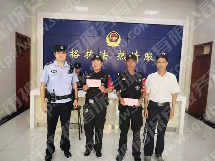 8月以來,駐宿遷汽車客運站的“神盾”保安員積極開展巡邏防控、“黃?!辈榭亍⒅刃蚓S護、源頭安檢等工作,在駐點單位及周邊地區(qū)治安環(huán)境整治工作中作出積極貢獻。為推進保安聯(lián)勤聯(lián)防工作、獎勵優(yōu)秀聯(lián)勤聯(lián)防保安員,9月18日下午,宿遷經(jīng)濟技術開發(fā)區(qū)公安分局黃河派出所向駐宿遷汽車客運站的“神盾”保安員發(fā)放現(xiàn)金獎勵。
